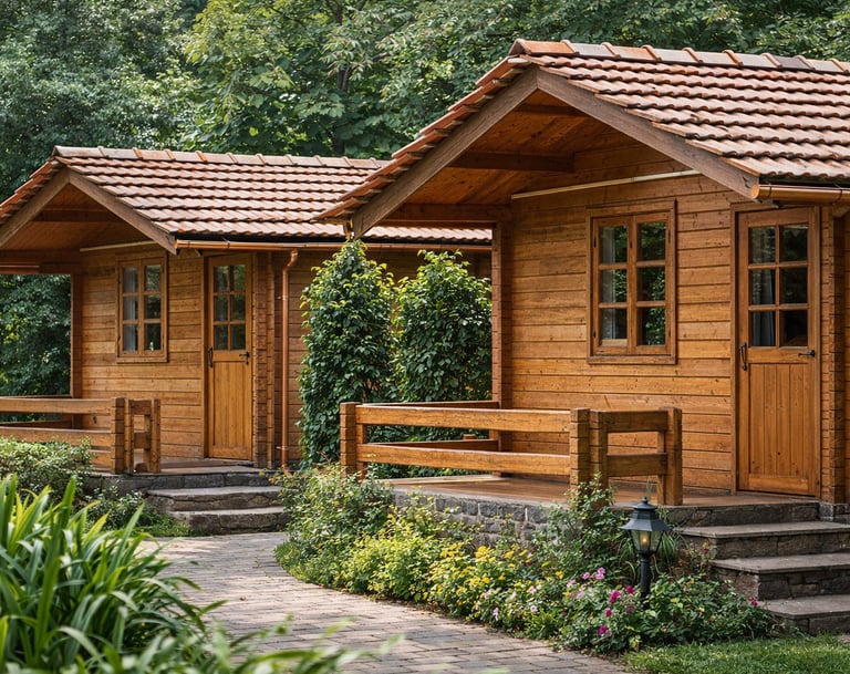 Beautifully designed wooden cottages that blend natural charm with modern comfort, creating a warm and serene living experience.